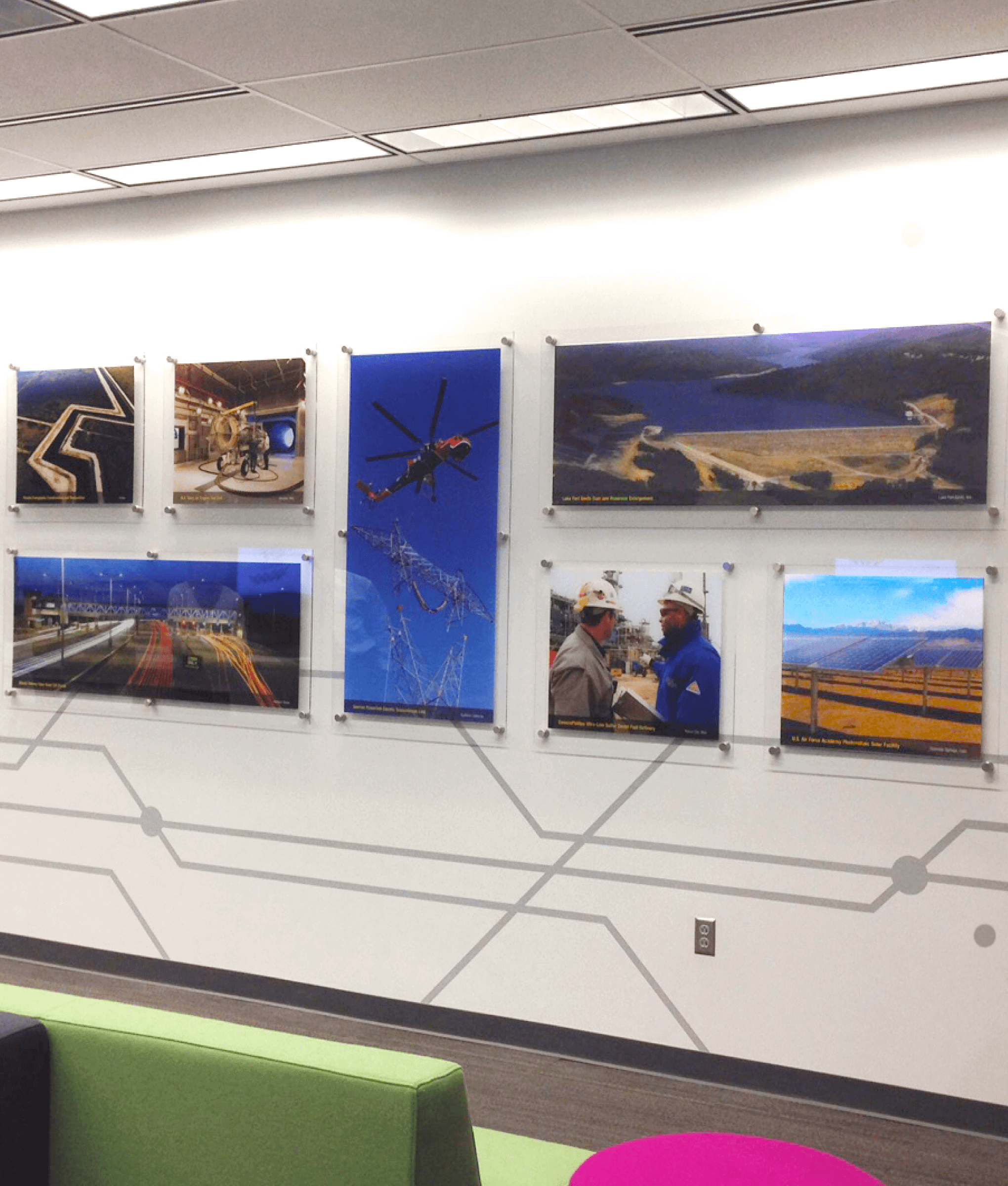 Burns & McDonnell came to us with big ideas that needed some big printing. Working with their creative team, we printed large scale graphics to help give their office an updated look and feel.