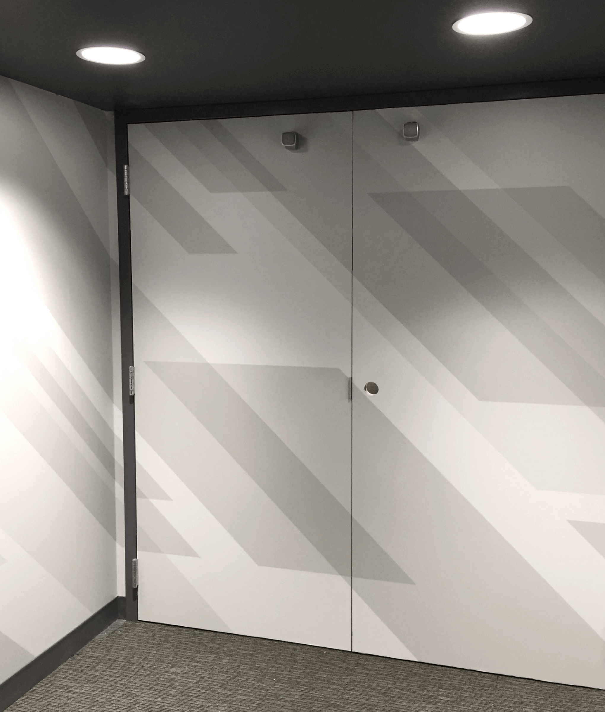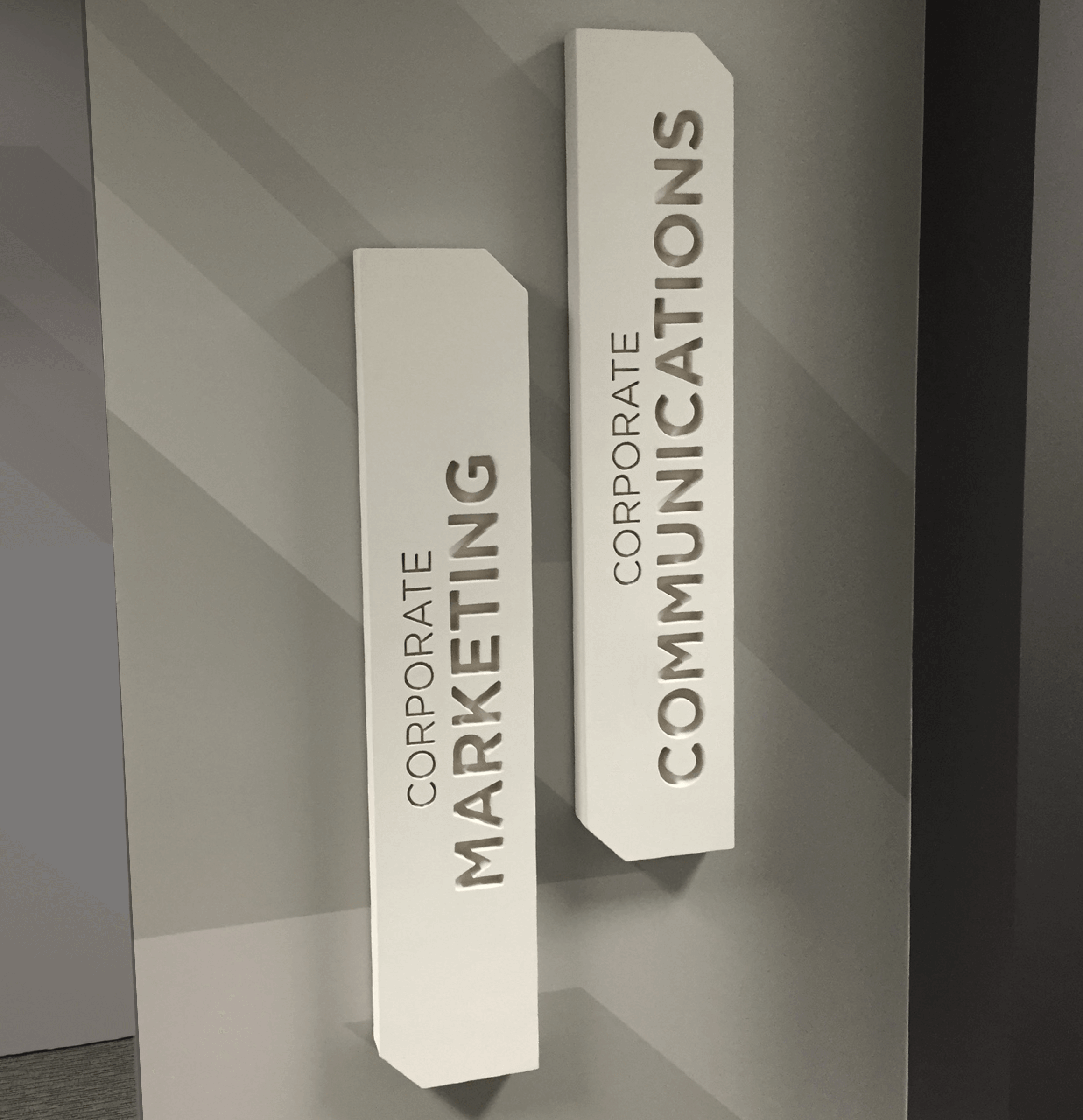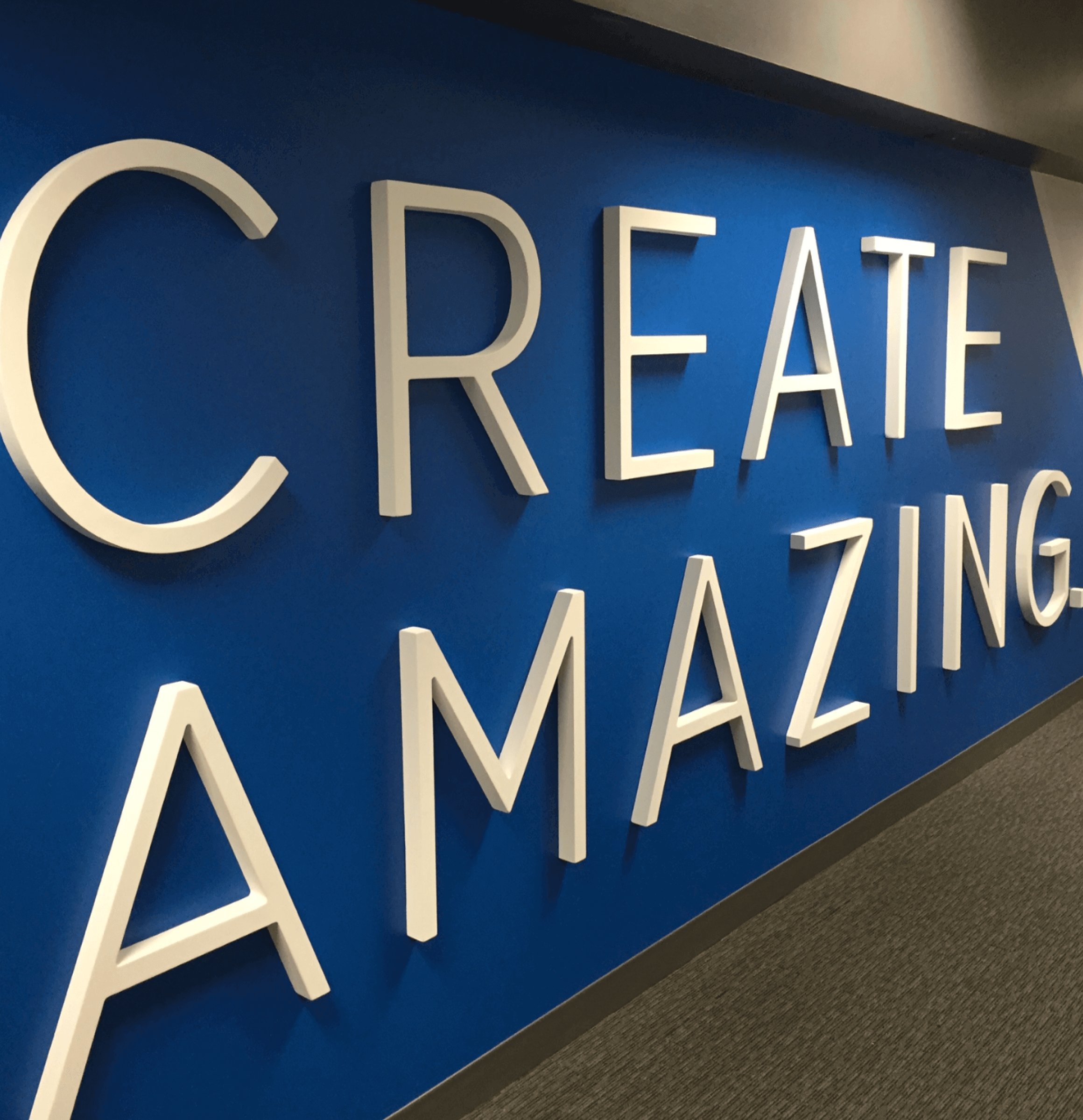 We helped recreate the office branding at every step of the process. Different materials are used throughout to create multi-dimensional surfaces, balancing color, light and shadow to create unique looks from multiple angles.